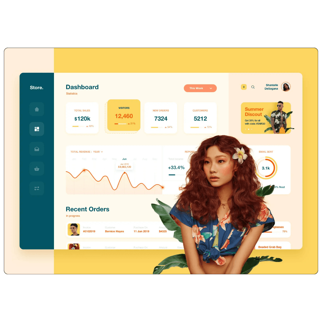 Visualiza tus resultados con paneles claros: ingresos, productos más vendidos y tráfico.